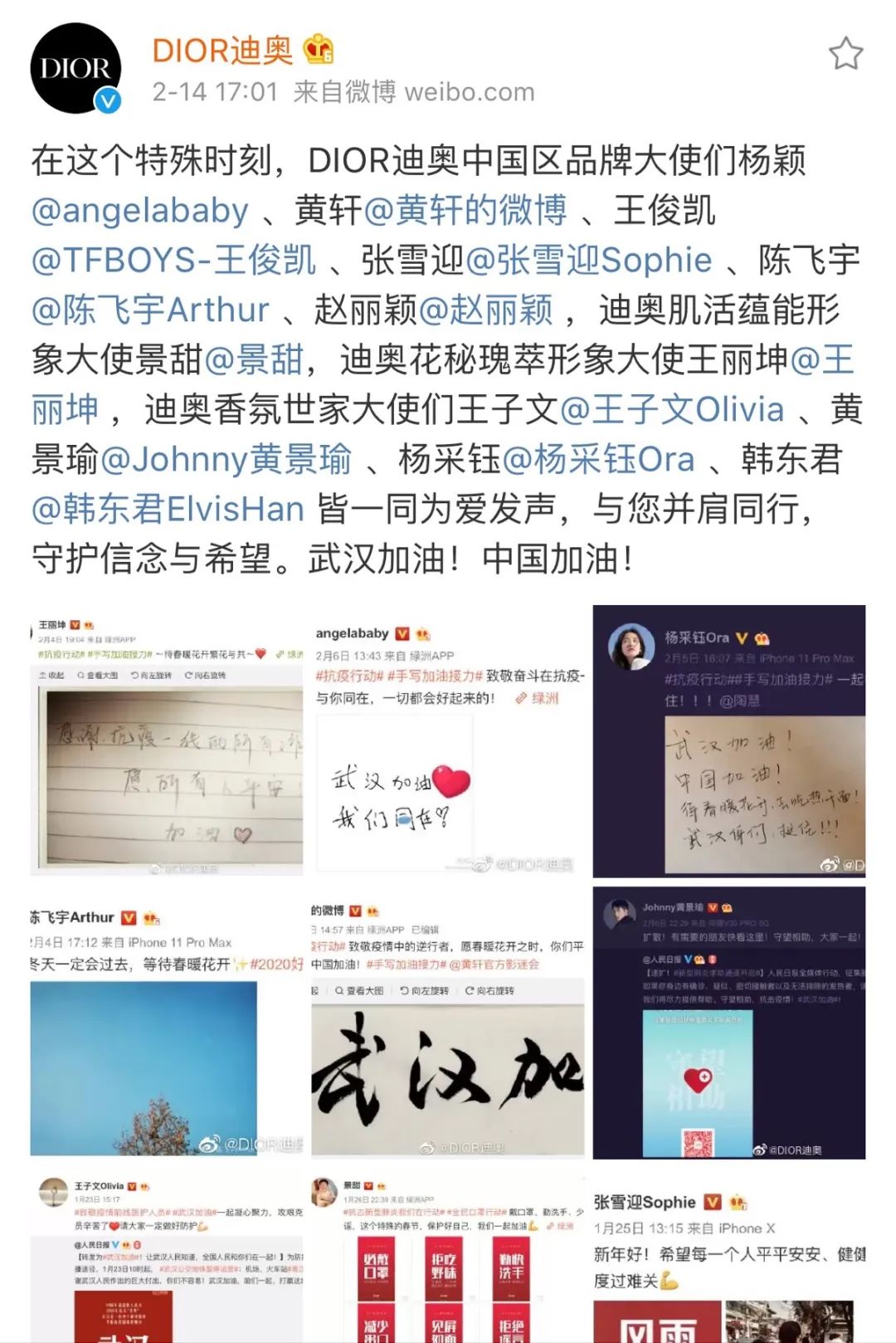 早前Dior联合品牌好友在社交媒体上为疫情发声