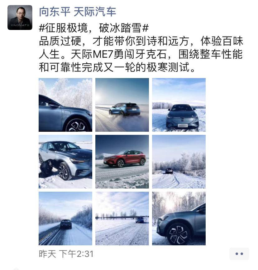 2月27日早些时候,他本人还发布了一条有关天际汽车ME7在牙克石进行可靠性试验的内容。