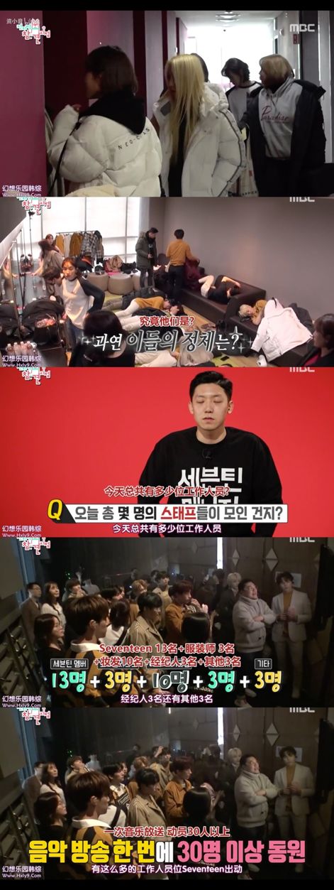 韩国大型男团seventeen录制一次打歌节目,动员的人员规模超过30人