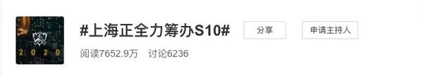 2月26日上海市政府表示,上海会全力办好英雄联盟全球总决赛S10等重大赛事,当晚#上海正全力筹办S10#即登上微博热搜