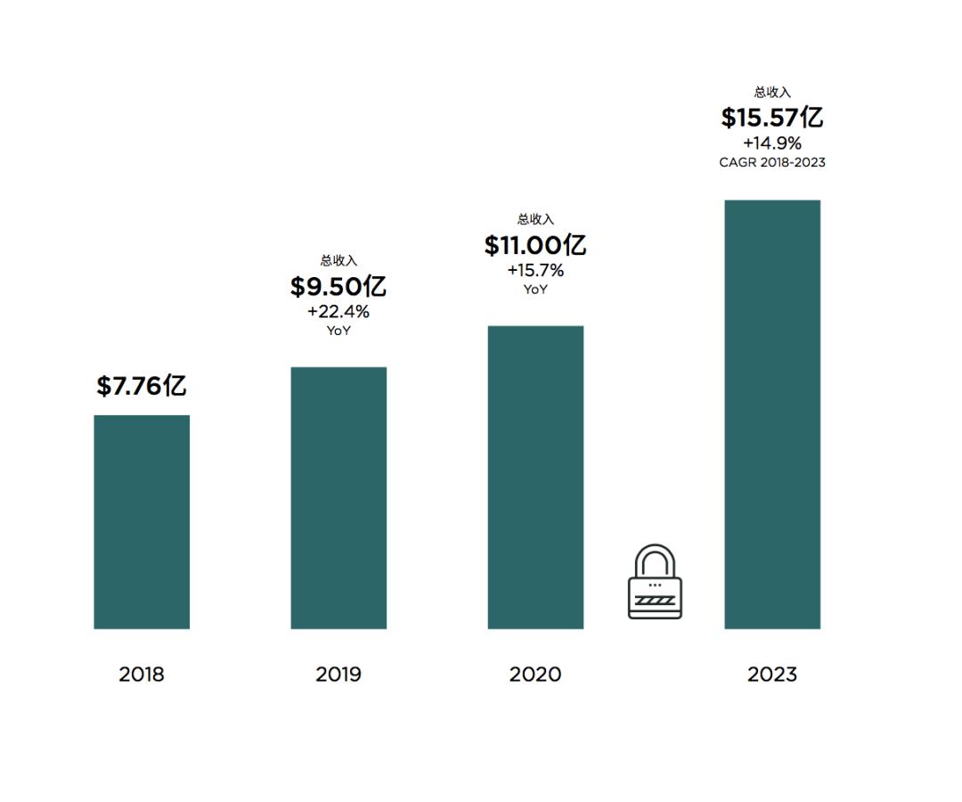 在所有的收入来源中,赞助收入占比最高,预计将从2019年的5.44亿美元增长到2020年的6.37亿美元。而到目前为止,新增的虚拟商品收入是全球增长最快的电竞收入来源,复合年增长率(2018- 2023年)为72.4%,远超过赞助收入的复合年增长率(16.6%)。同时,直播也被视作一项重要的收入来源。直播将在2020年带来1820万美元的收入,并在2023年增长到3160万美 元。2020年,来自周边商品和票务的收入将会超过游戏厂商支付的补贴费用,在未来几年以0.5%的复合年增长率(2018-2023年)平稳增长。