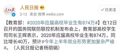 对于874万应届毕业生来说,疫情不仅影响到毕业的相关流程,更会影响到就业这一迫在眉睫的现实问题。