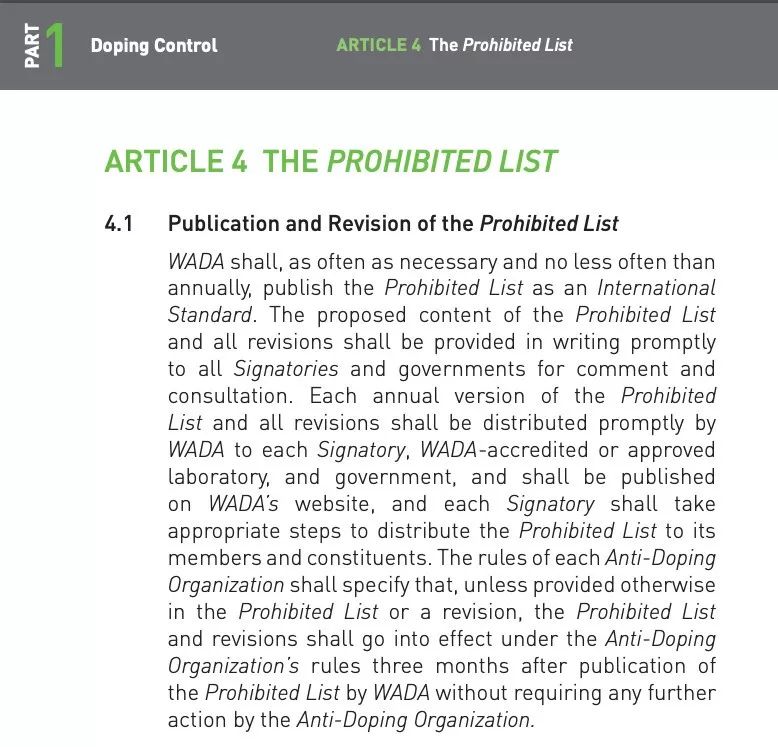 《国际反兴奋剂条例》(共 156 页)中明确规定了