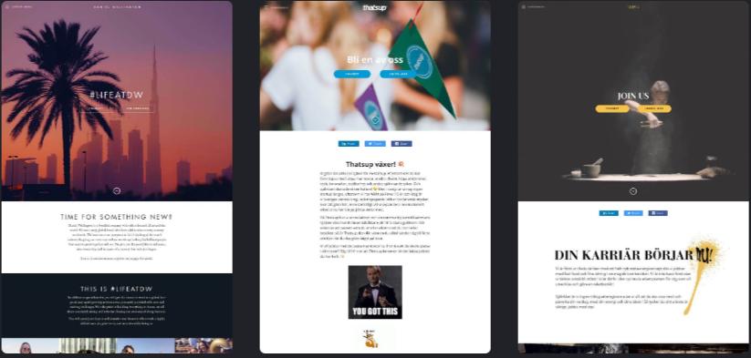 招聘页面制作工具中预设了多个应用模块,用户无需专业知识,可直接拖拽调用。其页面效果也可以基于公司品牌调性和偏好,设置个性化版式。招聘页面内容包括工作介绍、现有员工展示以及移动端申请链接,完成后可利用Teamtailor一键分发到社交媒体或其他招聘渠道。