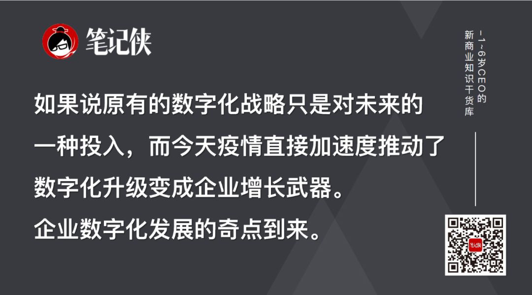 如果说原有的数字化战略只是对未来的一种投入,而今天疫情直接加速度推动了数字化升级变成企业增长武器。企业数字化发展的奇点到来。