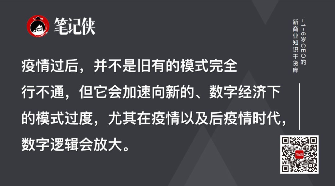 疫情过后,并不是旧有的模式完全行不通,但它会加速向新的、数字经济下的模式过度,尤其在疫情以及后疫情时代,数字逻辑会放大。
