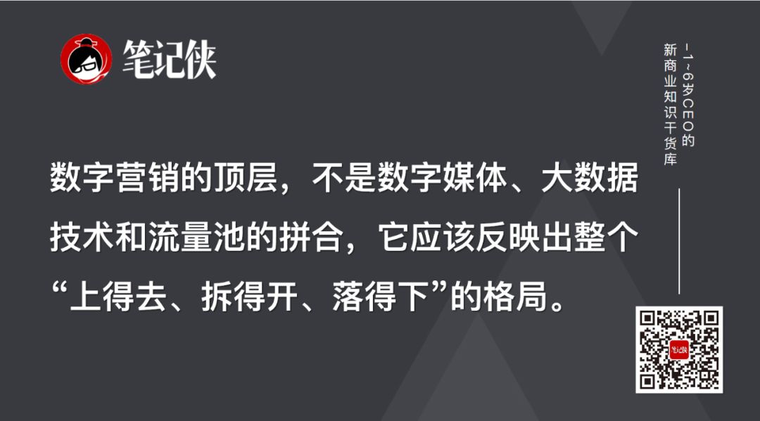 数字营销的顶层,不是数字媒体、大数据技术和流量池的拼合,它应该反映出整个“上得去、拆得开、落得下”的格局。