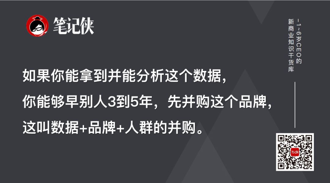 如果你能拿到并能分析这个数据,你能够早别人3到5年,先并购这个品牌,这叫数据+品牌+人群的并购。