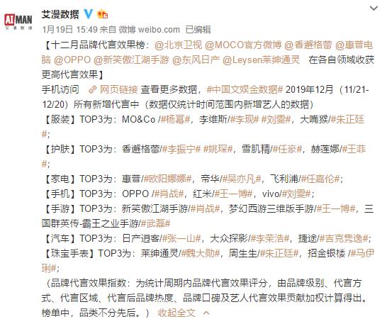 根据艾漫数据发布的2019年12月、2020年1月品牌代言效果榜,肖战推广、代言的OPPO手机、新笑傲江湖手游、开小灶等品牌,都位列同类品类TOP1。而在事件发酵后,肖战粉丝控评的重点就是各大品牌官博,真果粒官博热评第一的肖战粉丝评论道:“我非常乐意购买任何由肖战代言、推广、担当大使且记入肖战销量的产品。”