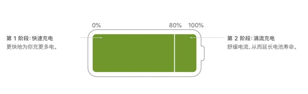 安卓厂商在快充技术上已经非常超前,这几年开始重视起了电池寿命。苹果也在 iOS 13 中增加了「优化电池充电」的选项,前 80% 快速充电,后 20% 会根据用户习惯,快起床前再进行涓流充电,从而延长电池寿命。