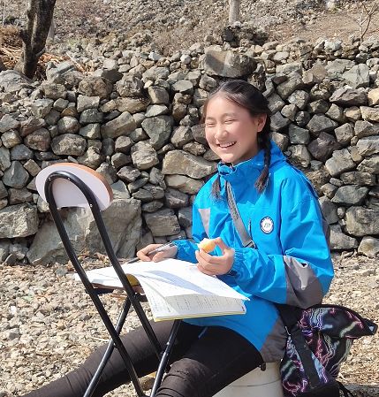 天气好时,阿干的姐姐会在外面学习