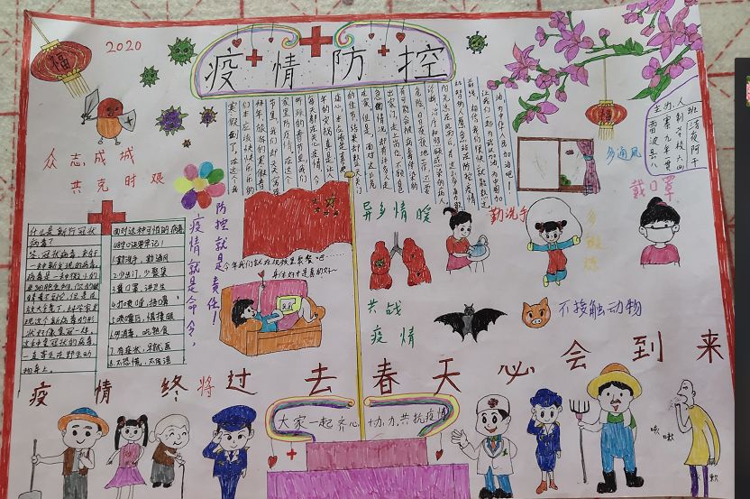 学习语文、数学、英语等文化课,只是阿干日常学习的一部分,学习之外,阿干学校的老师还会组织学生做手工及爱国主题的手抄报等线下活动,学生完成手工或者手抄报后,家长拍照上传,群里的每个学生都可以看到彼此的作品。