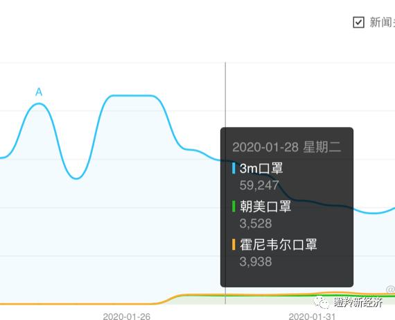 所以,在疫情爆发的情况下,3M就成了一个特定寻找的目标。笔者用3M和另一个国际品牌霍尼韦尔,以及某国产知名口罩的百度指数搜索进行分析发现,消费者对于已经进入心智认知的品类第一名和第二、三名的关注度差值在几十倍到无限大之间(不针对第三方)。