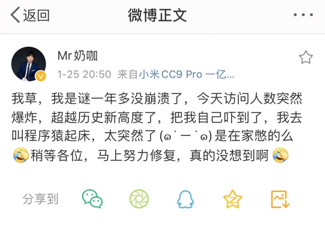 玩吧CEO赵东接受Tech星球(微信ID :Tech618)采访时表示,玩吧第一次服务器崩溃出现在1月27日,面对突然涌入的大量流量,加服务器其实是小事,更重要的是人员调动,需要把运营、客服、产品、技术、运营集体调动起来,让大家回归紧张的战斗状态。