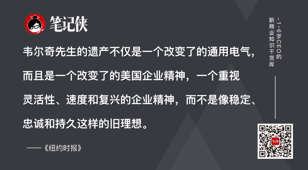 在他的带领下,通用电气从一家制造业巨头转变为以服务业和电子商务为导向的企业巨人,成为真正的业界领袖级企业。