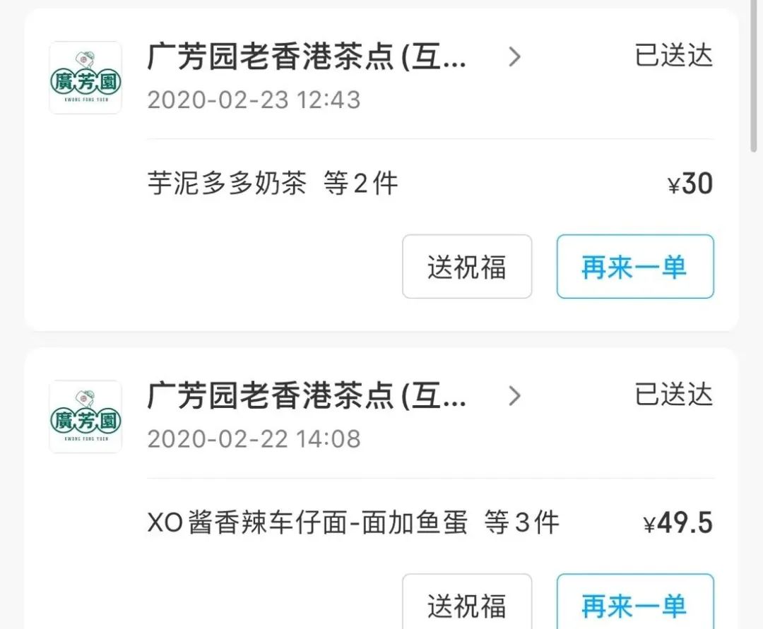 广州一家茶饮店老板说:“上个月15号开始做外卖,20号开始生意就上去了,持续了一个星期左右,这几天有点回落。”