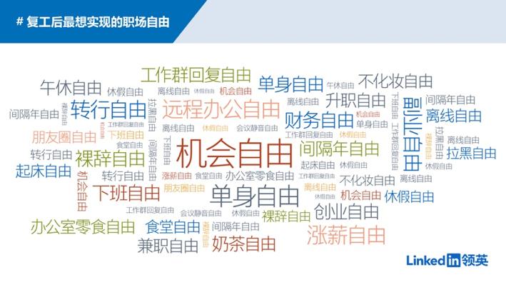 目前职场人最担心的是就业市场整体机会减少(45%),其次是自身财务状况困难(40%)、自身技能被淘汰(34%)。如何能够在复工后获得更多职业机会?继史上最大规模的停工和远程办公后,一场更大规模的职场破壁行动已经悄然启动。疫情在限制自由的同时,激发了职场中关于自由更深远的追求。