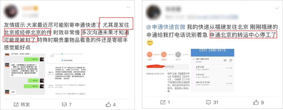 近期想往北京发快递,一定要记得避开申通。经客服告知,申通在北京的转运中心已经停工了,所以最近北京申通快递都非常慢。