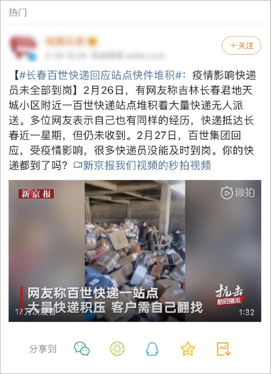 绝大部分快递员都回不来或是无法复工,又不像常年不停运的直营企业一样有“后备军”,加盟制企业的派件速度可想而知。