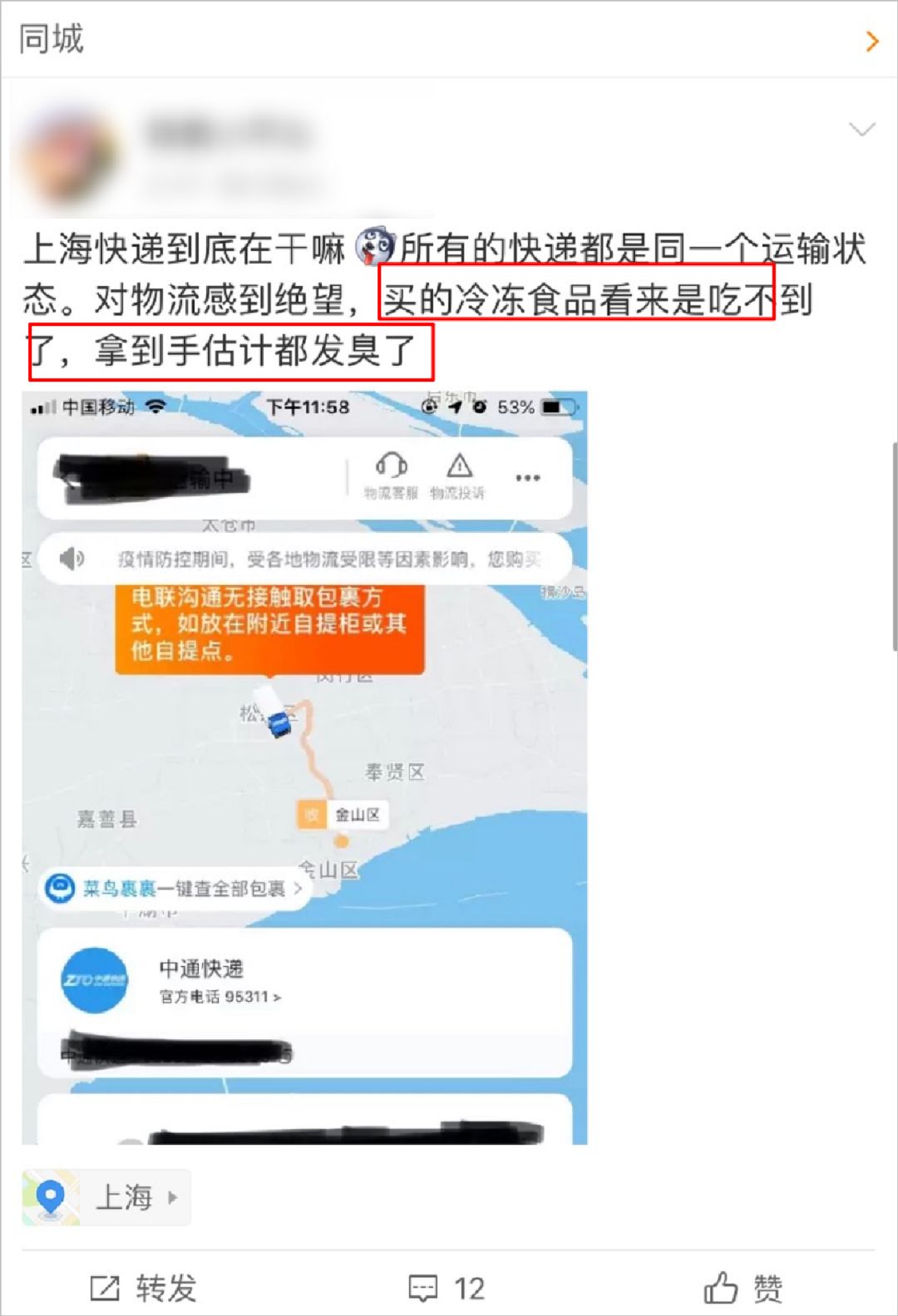 在微博,我也看到了很多买了生鲜、短保产品,但因为快递时效问题而变质,索赔无果的小伙伴: