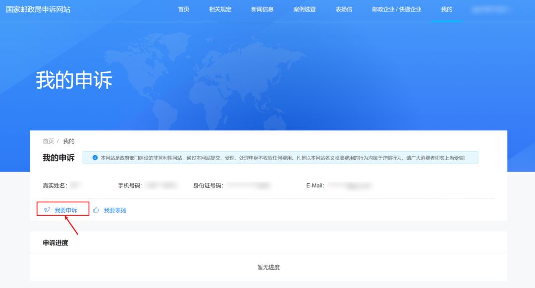 这个网站是专门用来投诉快递问题的。想要投诉,只需要注册一个账号就可以了,注册完登录,就会进入到「我的申诉」页面:
