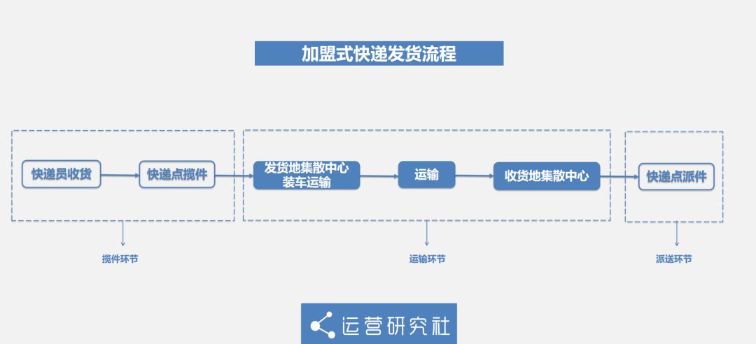 为了方便大家理解,我“简单粗暴”地把快递流通划分为了「揽件环节」「运输环节」和「派送环节」。