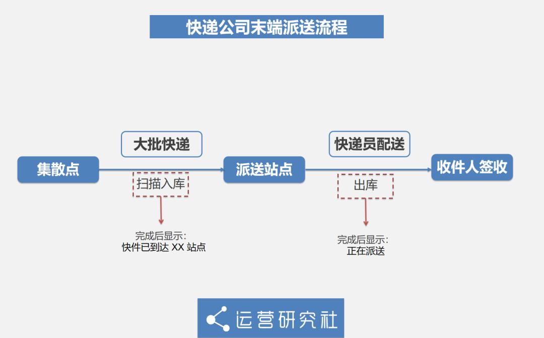 因为一件快递到达站点后不能直接派送,还要进行入库、出库派送等一系列必要操作。