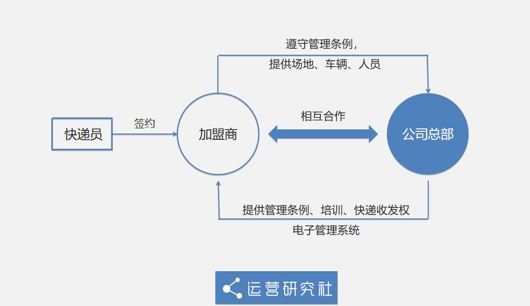 加盟商本身属于个体户,和公司总部是合作关系,而不是上下级关系;快递员们的劳动合同是和站点签的,他们的老板是站点的负责人,而不是公司。