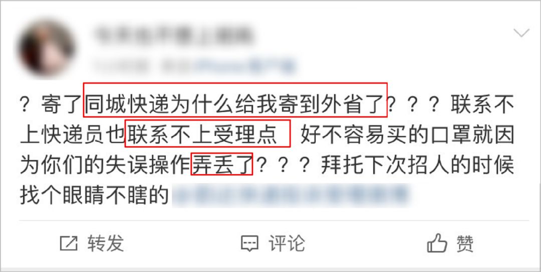 还有一些同学的同城快递被寄到了外省,而且寄着寄着就丢了,丢了以后还没人处理: