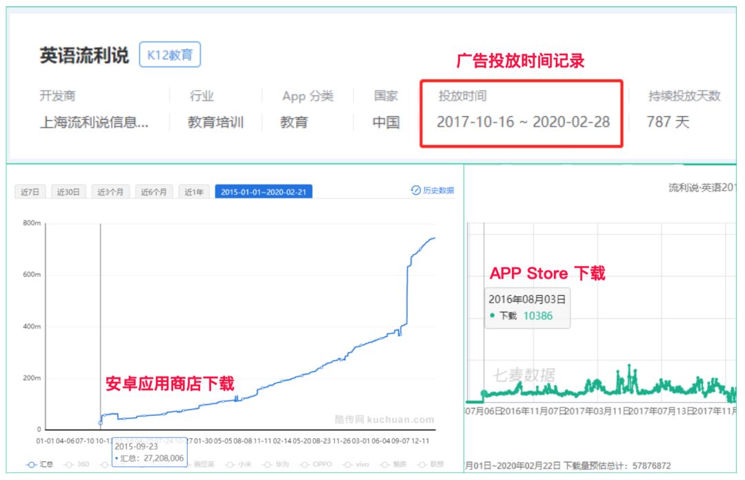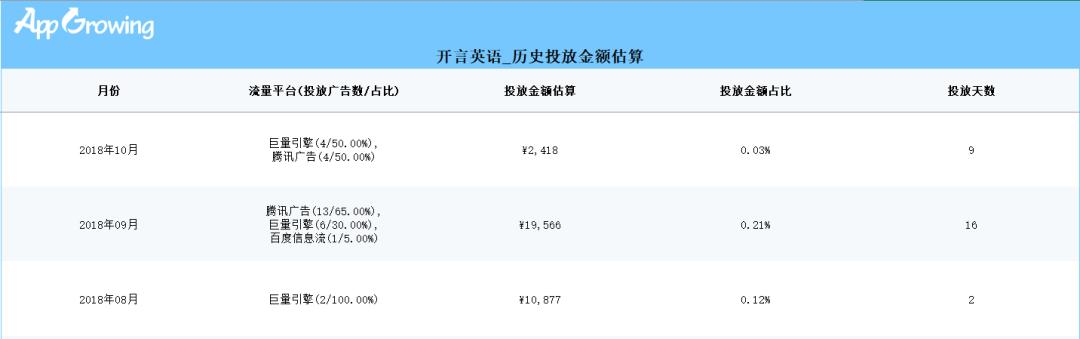 综合两项数据,可以基本判断开言英语在被收购4个月之后,也就是2018年9月前后开始进行付费推广。