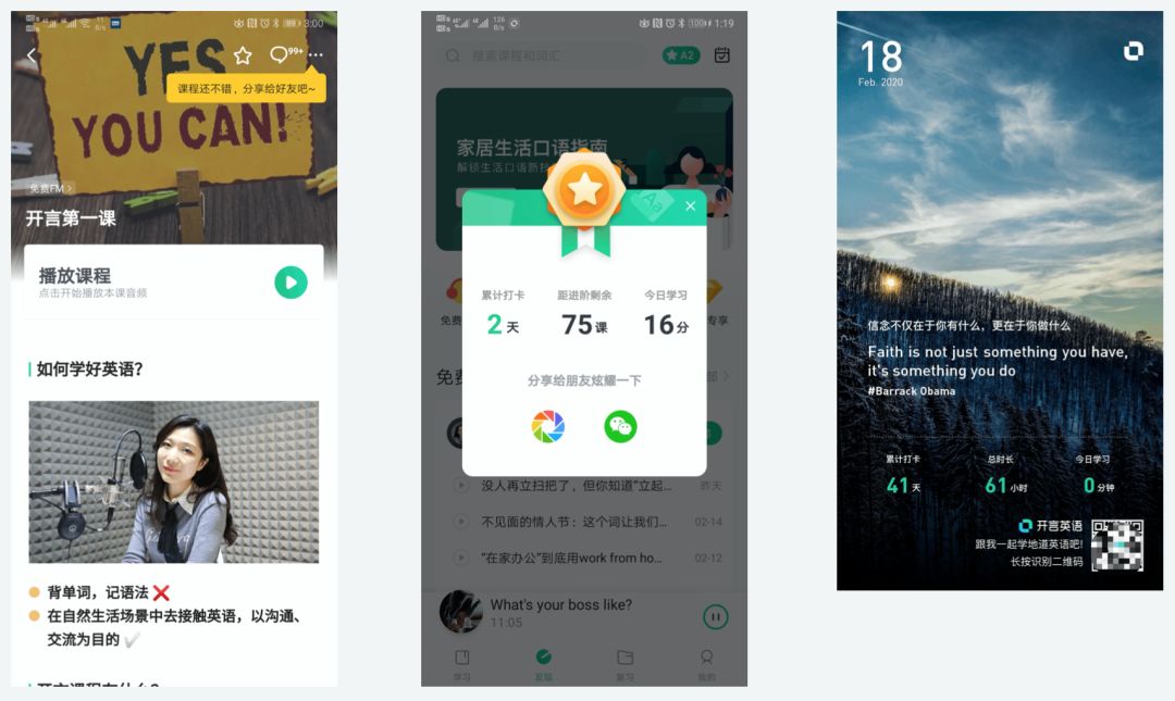 这对音频内容天然利好,通过内容分发拉新,一度成为开言英语获取用户的主要途径。