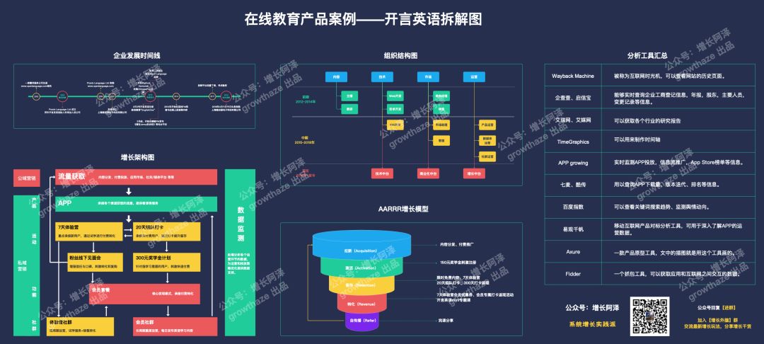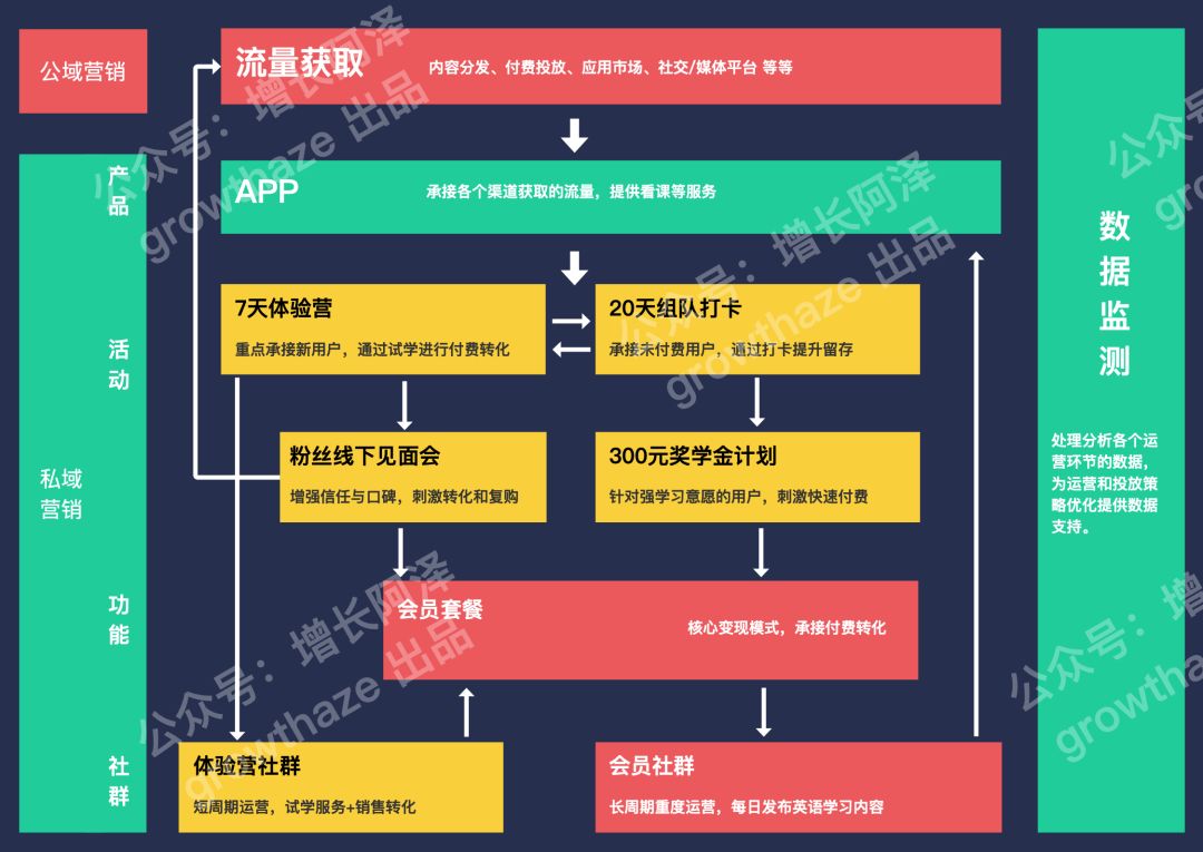 综合以上信息,我整理了一份开言英语的增长架构图。
