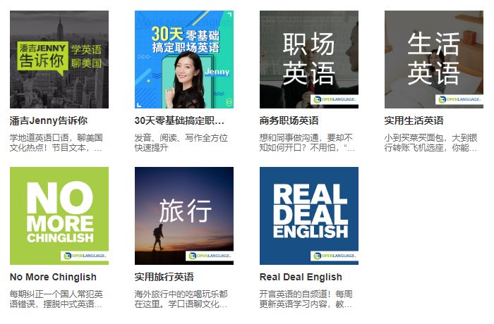 2012年3月起,开言英语开始在蜻蜓FM发布《潘吉Jenny告诉你》、《Real Deal English》等电台节目,2014年3月开始在荔枝FM发布内容,同年6月上线喜马拉雅同步更新。
