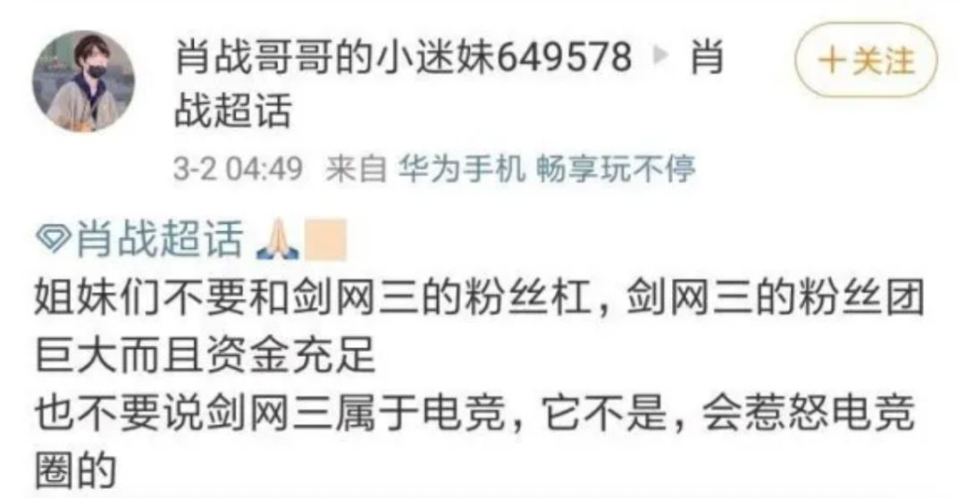 对线过程中被饭圈女孩称为“高智商、有经济实力电竞选手”,让剑三玩家们摸不着头脑,甚至有点想笑。