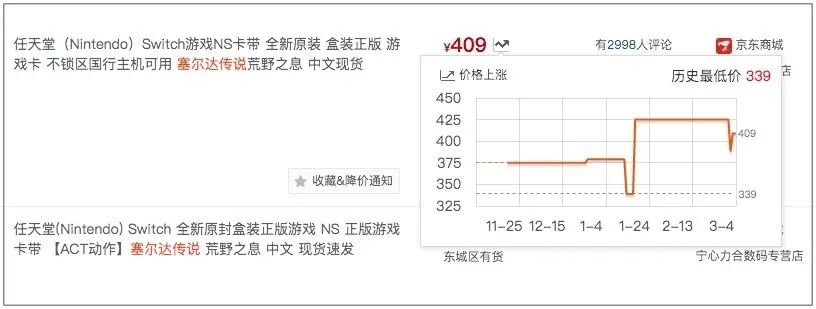 《塞尔达传说:旷野之息》的价格走势