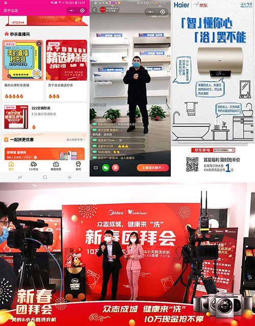 在长虹美菱举办的“线上直播+微信秒杀”活动上,据称一次卖出了6000台冰箱和洗衣机。海信空调则举办“第一届粉丝直播节”,由海信集团中国区营销总部副总裁王宏伟亲自出镜,参与用户砍价,据称直播有超过78万人参与。惠而浦则在新春团拜会之余,还接连不断地直播来演示自家洗衣机等,与直播带货口红的方式相似。