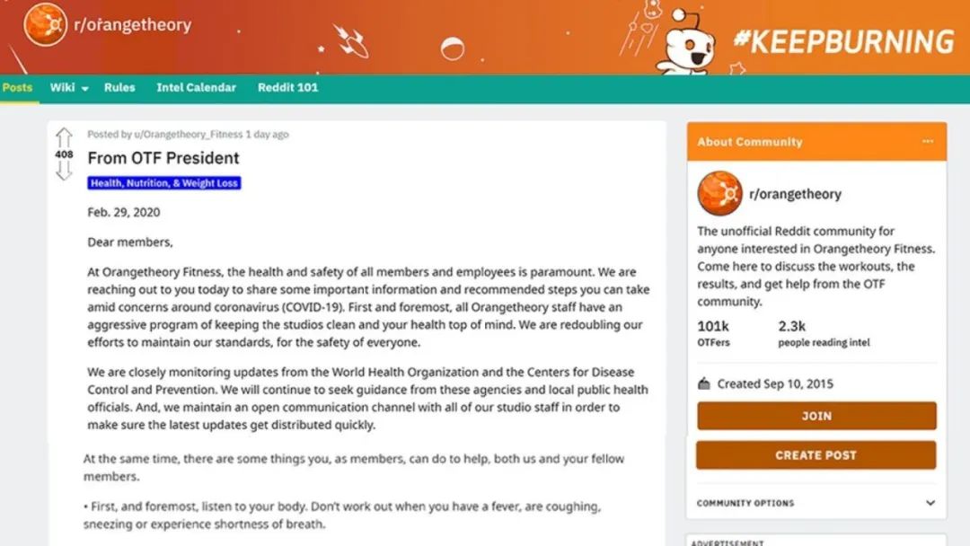 ■ Orangetheory Fitness在Reddit的通告