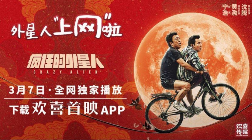 ▲去年3月欢喜首映APP独播《疯狂的外星人》