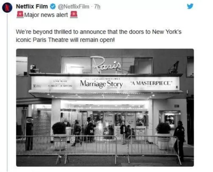 即便是奈飞,他也有过租赁实体院线的经历,根据媒体报道,2019年11月流媒体平台Netflix(NFLX.US)宣布与纽约巴黎剧院租借了十年的场地,这也是该公司成功签订的第一份长期租赁。