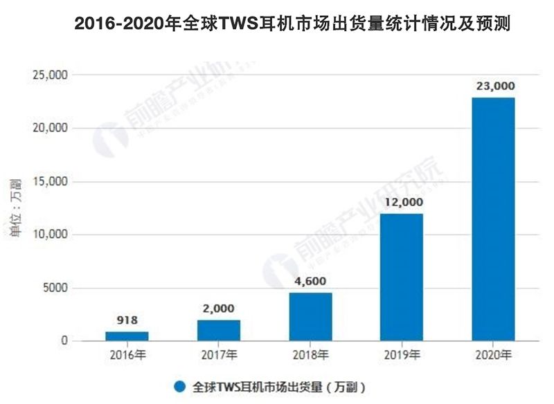 苹果AirPods的出现,在蓝牙耳机市场擦出了不一样的火花,其发展势头亦逐渐呈燎原之势。市场研究机构Counterpoint Research预计,2019年全球TWS耳机出货量为1.2亿副,而这一数据随着新一年换机潮的出现,在2020年有望达到2.3亿副。