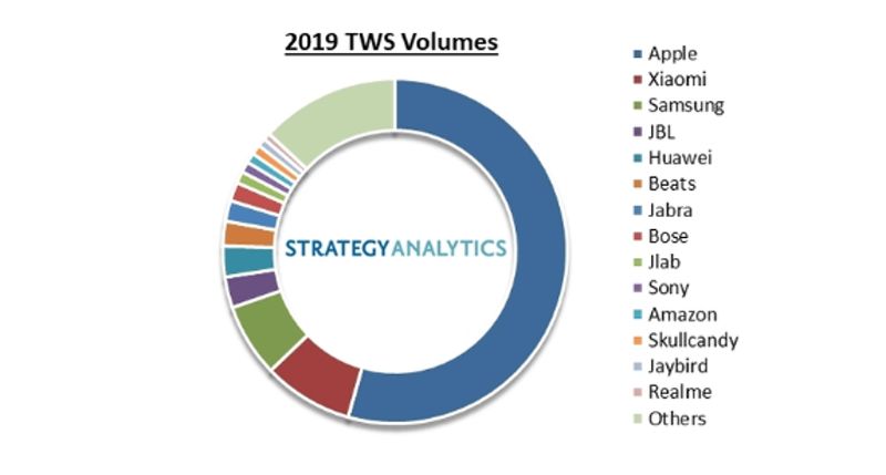 ▲2019年的TWS蓝牙耳机出货量(来源:Strategy Analytics)