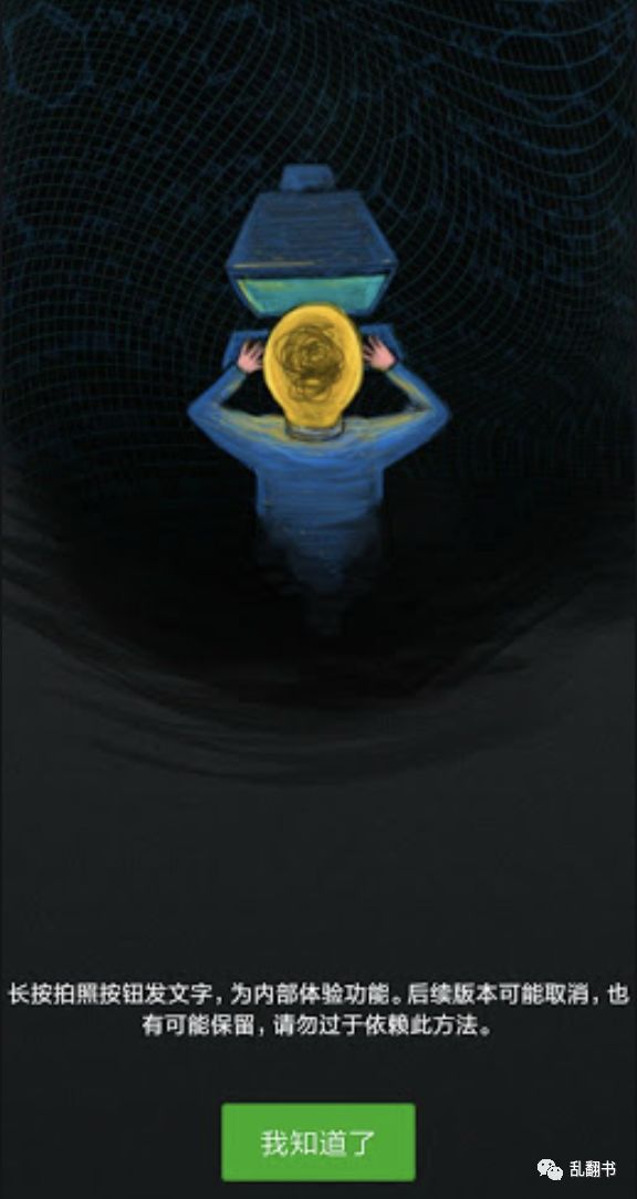 朋友圈是个视觉系产品,鼓励发图片,当你想发纯文字时候,一是入口藏的很深,另外还会给你一个该功能可能取消的提醒: