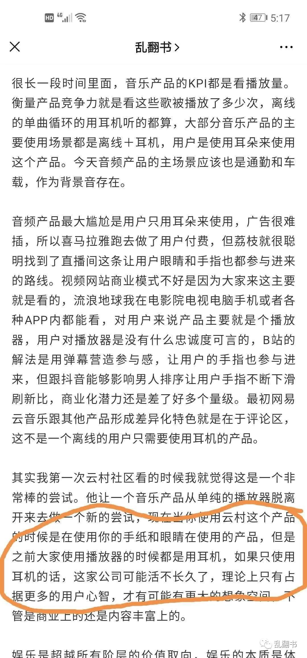 无独有偶,刚才发现丁磊在Q4季度财报会上对网易云音乐“云村”版块的评价跟我去年在他们发布会上说的话如出一辙: