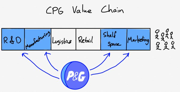 宝洁等CPG公司通过将研发、生产、营销以及货架空间集成到一起,把原材料、零售以及物流进行模块化与商品化,从而攫取了大部分的价值。