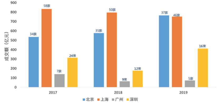 图:2017-2019年一线城市大宗物业交易趋势