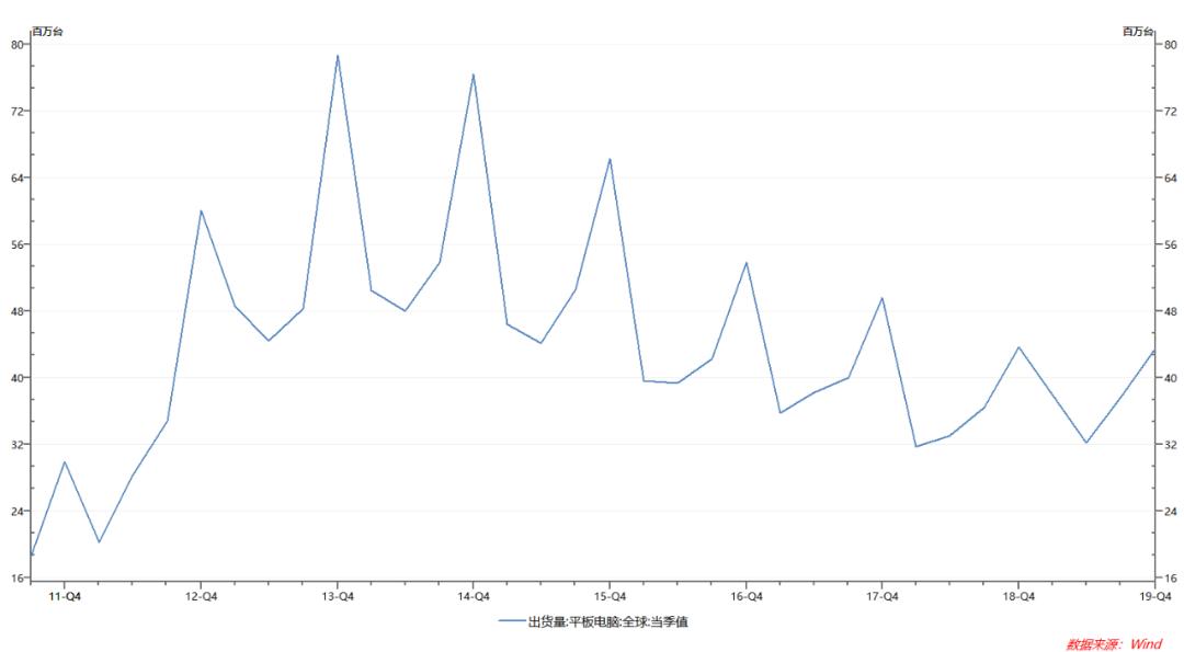 通过对近年来平板电脑的出货量观察,我们可以发现,2013年以后平板电脑的整体表现正处于波动下滑的趋势,即便每年第四季度都能迎来一个不小的增长,但总体市场的乏力依然明显。