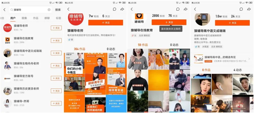 不同于学而思和作业帮大力运营旗下账号,猿辅导以【猿辅导老师】账号为主,只发一些资讯、预告、小知识视频。