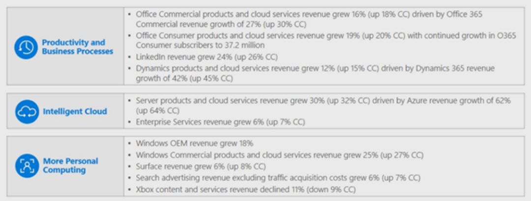 尽管通常认为成长股的估值通常要高于被归类为防御型股票的公司,但微软也符合所有成长股的标准。因此,微软股票一定的溢价至少可以部分归因于微软数十年来一直保持着持续加快的增长: