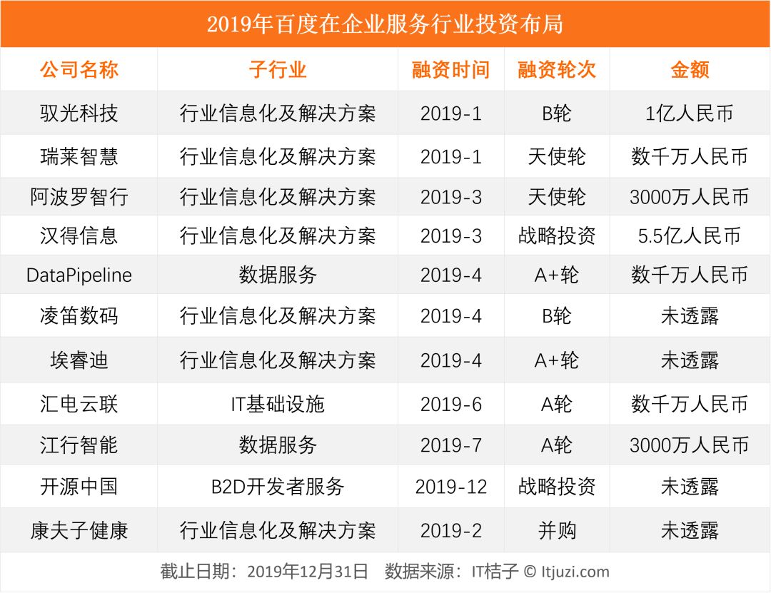 除此以外,百度还投资了以数据智能驱动的电力交易服务商「汇电云联」,国内最大的开源技术社区「开源中国」等。