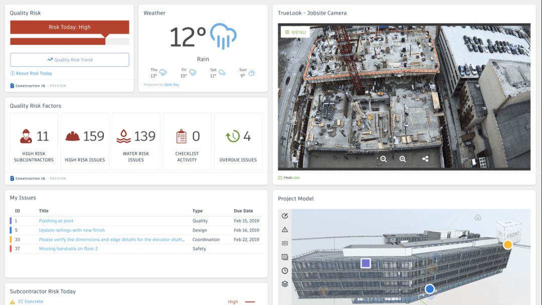 Autodesk 于 2019 年推出 Construction IQ,这是一种与 BIM 360 (建筑管理软件)项目管理平台配合使用的 AI 工具。